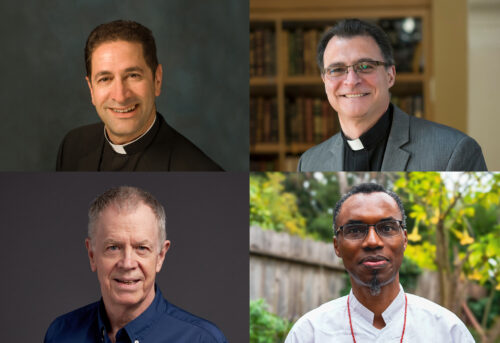 Outreach benefits from the guidance of a Jesuit Board of Advisors: Timothy Kesicki, S.J. top left; Michael Zampelli, S.J., top right; James F. Keenan, S.J., bottom left; and Agbonkhianmeghe E. Orobator, S.J., bottom right.